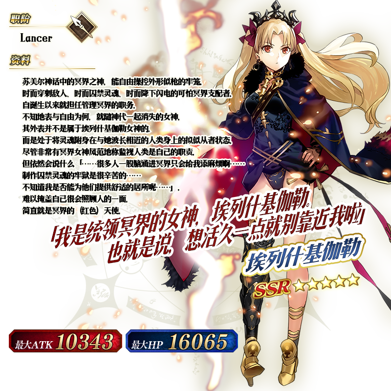 ※埃列什基伽勒在本次推荐召唤结束后,将不会加入剧情卡池。