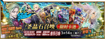 | 国服当前卡池 | 开始时间 ~ 结束时间 | 推荐召唤从者 (期间限定从者带有红色边框;剧情限定从者带有蓝色边框) |