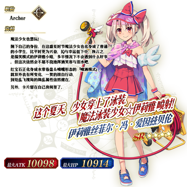 ※以上的「★4(SR) 伊莉雅丝菲尔·冯·爱因兹贝伦(Archer)」的圣肖像为灵基再临第2阶段。