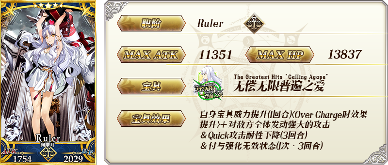 付与自身无敌状态(2次)&Buster指令卡性能提升10% | |||
