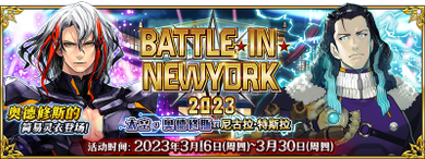 | 关联卡池 | BATTLE IN NEWYORK 2023推荐召唤 BATTLE IN NEWYORK 2023 吉尔伽美什(Archer)推荐召唤 |