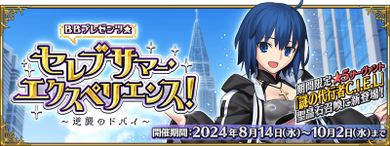 | 关联卡池 | BB主办☆名流夏日体验! 谜之代行者C.I.E.L推荐召唤 BB主办☆名流夏日体验! 迦尔纳推荐召唤 复刻 泳装2019~2021推荐召唤 复刻 泳装2023推荐召唤 |